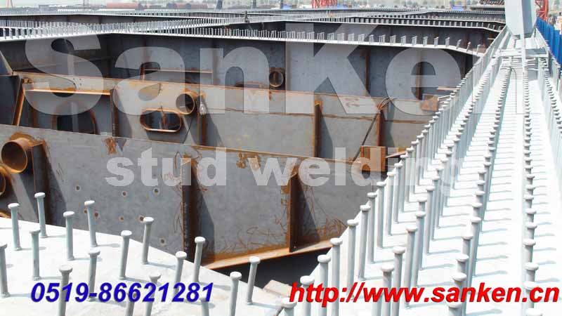 三墾ARC6000i新型數字逆變栓釘焊機在中國港珠澳跨海特大橋項目中施工,剪力釘規格為22*250mm.